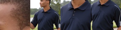 Super cool polyester pique knit with contrast color three-stripe application detail on the sleeves.