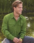 100% poly lining; 4.1 oz. 55/45 cotton/poly flannel shell; Quilted nylon lining; Button-down front; 2 chest pockets with hook and loop flaps; Side pockets;