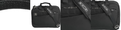 - 600D poly/420D dobby polyFlapover construction with double lock closure Interior padded laptop compartment Padded tablet/e-reader sleeve Easy access zippered pockets for business essentials Dual side beverage/accessory holsters Adjustable and padded shoulder strap Top handleLaptop sleeve: 11"h x 16"w x 1.5"d