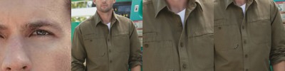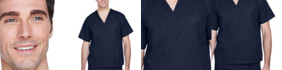 4.9 oz./yd / 166 gsm, 55% cotton, 45% polyester poplin; Standard V-neck; Chest pocket;