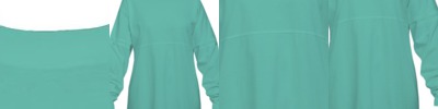 - Raglan sleeves with raw-edge