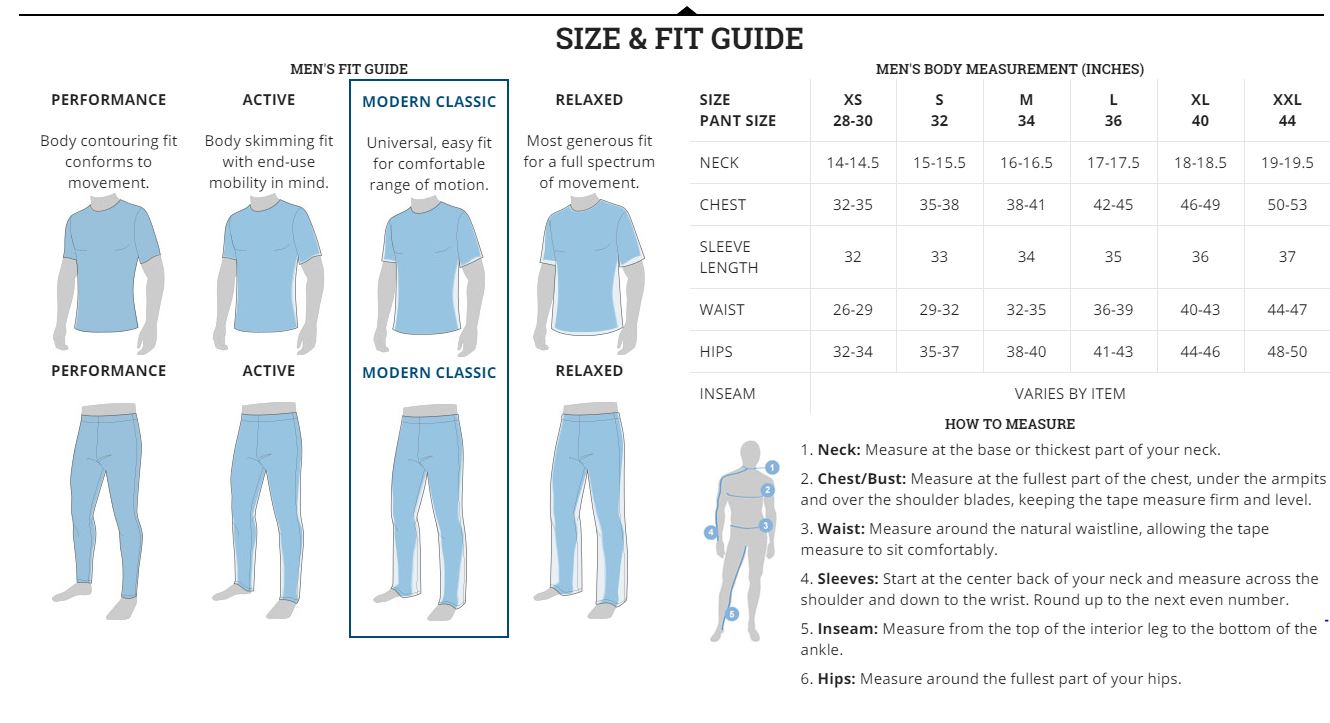 | Body Length | 26 1/2 | 27 1/2 | 28 1/2 | 29 1/2 | 30 1/2 | 31 1/2 | 32 1/2 |