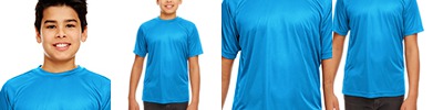 4 oz., 100% micro-polyester; Moisture-wicking; UPF 30+ protection; Athletic fit; Neck tape; 1/4" topstitching; Transitioning from heat-seal label to tear away label. Inventory may be mixed;