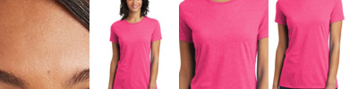 - 3.8-ounce, 100% polyester interlock with PosiCharge technology