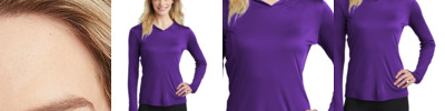 This lightweight hooded pullover locks in color and wicks moisture. Its versatile enough for year-round wear.