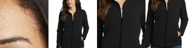 Sophistication meets great weather protection in this sleek, technical soft shell. A durable water-repellent (DWR) finish sheds rain and stretch adds easy mobility.