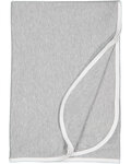 5.5 oz., 100% combed ringspun cotton premium jersey ; White is sewn with 100% cotton thread; Double needle ribbed binding; 30” wide x 40” long; EasyTear™ label; CPSIA compliant tracking lable in garment; Machine washable/ tumble dry low; Fit: Infant Unisex; Note: Color descriptions indicate Blanket/Trim colors, e.g. Banana/Yellow indicates Banana blanket with Yellow trim.;