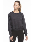 6.5 oz., 50% polyester, 38% cotton, 12% rayon; Tri-blend sponge fleece; Made in USA; Closest to a junior fit;