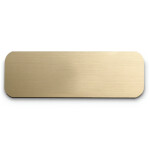 Laser engraved plastic name badge. Personalization up to 2 lines, logo engraving and pin or pin/clip combo back included in price. Magnet backs available for additional charge. Rounded corners standard, square corners available upon request. Available in gold/black, silver/black, black/white, white/black, blue/white, or red/white. 3" W x 1" H x .060" D