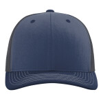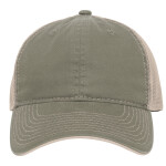 Heavy washed, color blocked meshback cap with contrast stitching. Lightly structured, low profile, twill front and mesh back panels, sandwich visor with plastic snap closure.