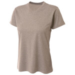100% polyester heather tee, 4.2 oz. per square yard; Moisture management for all season comfort; Odor resistant and stain release fabric for easy care; Double needle cover-stitch hem; Reinforced shoulder seam; Tag free v-neck;