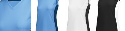 100% polyester wicking smooth knit with true hue technology™ that helps prevent dye migration; 100% polyester propelit micromesh wicking knit inserts; Wicking smooth knit with true hue technology™ that helps prevent dye migration; Wicks moisture; Odor resistant; Ladies' fit; Pad print label; V-neck collar;