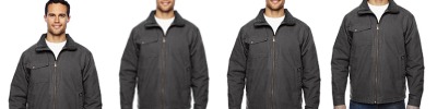 100% water resistant polyester; Moisture wicking, odor resistant, stain release; Adjustable drawcord at waist and hood; Hook & loop closure at cuff; Vented back; Two front zippered pockets;