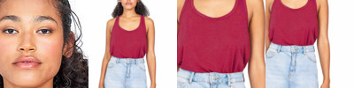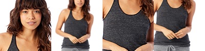 2.5 oz., 50 singles; 70% Modal, 30% polyester; The fiber Modal from Lenzing® is a sustainably sourced, renewable and bio-degradable botanic fiber; Fitted, side seams; Shoulder-to-shoulder taping; Double-needle stitching on sleeves and bottom hem; Satin Label; Racerback style, cropped body; Made in USA;