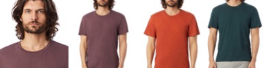3.1 oz., 50% polyester, 50% rayon, 40 singles; Open crewneck; Bound neckband; Dropped armhole; Curved shirttail hem; Double needle finishing at hem & armhole; Classic fit; “A” list status from CDP (Carbon Disclosure Project) ; Energy Star Partner of the Year (12 consecutive years); Every piece of Alternative apparel purchased from our company qualifies for Hanes4Education;
