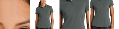 This polo delivers timeless style and performance with ultra-smooth double pique and Dri-FIT moisture management technology. Design features include a streamlined self-fabric collar and open hem sleeves. Tailored for a feminine fit with a five-button placket. A heat transfer contrast metallic silver Swoosh design trademark is on the left sleeve. Made of 6-ounce, 100% polyester Dri-FIT fabric.