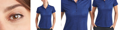 The allover crosshatch print adds a technical look to this polo, while the Dri-FIT fabrication delivers performance and ensures breathable comfort. Tailored for a feminine fit. Design details include a self-fabric collar, five-button placket and open hem sleeves. A contrast heat transfer Swoosh design trademark is on the left sleeve. Made of 5.29-ounce, 100% polyester Dri-FIT fabric.