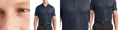 An allover embossed tonal tri-blade pattern gives this retail-inspired polo a sophisticated edge while Dri-FIT moisture management technology delivers breathable performance. Design features include a self-fabric collar, three-button placket and open hem sleeves. A contrast heat transfer Swoosh design trademark is on the left sleeve. Made of 5.29-ounce, 100% polyester Dri-FIT fabric.