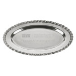 The cast aluminum Masthead Medium Oval Tray has a beautiful rope edge and makes a nice way to recognize a special occassion. Each tray features a Texas A&M Engineering logo using diamond drag engraving. Platter measures: 14.5" L x 10" W x 1" H