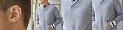 - 1x1 ribbed contrast-color collar