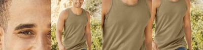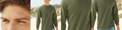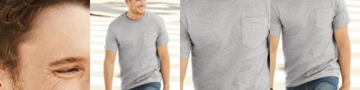 5.4 oz., 100% cotton; Heather Grey is 90% cotton, 10% polyester; Pocket double stitched for durability; Tubular construction; Made In USA;
