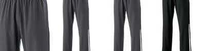 90% polyester/10% spandex, 4-way stretch woven fabric; Covered elastic waistband with inside drawcord; Side seam pockets; Contrast color side leg inserts; Zipper on outside lower leg; Straight leg; Water-resistant ;