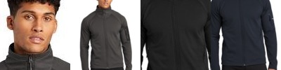 - 216 g/m2 86/14 polyester/elastane knit fleece with durable water-repellent (DWR) finish (bicep pocket)