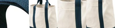 - 100% cotton twill Cotton web handles reinforced with stress-point stitching Dimensions:15.5"h x 14.5"w x 7"dNote: Bags not intended for use by children 12 and under. Includes a California Prop 65 and social responsibility hangtag.