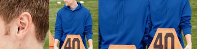 - Poly/spandex sleeve insert and side panels for added stretch and better fit over pads