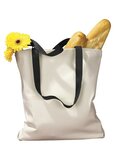 100% cotton canvas; Self-fabric handles; 10.25"W x 13.5"H x 5"D;