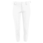 14 ounce per linear yard, 100% polyester double knit * Ladies' fit * Woven label * Low rise, elastic waistband with inside drawcord * Tunnel belt loops * Two-snap closure * Zipper fly * Two set-in double welt back pockets * Reinforced knees * Graded inseam * Elastic cuffs