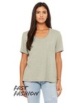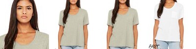 3.7 oz., 65% poly, 35% viscose, 32 singles; Light and airy flowy tee is a versatile essential; Relaxed, draped fit with scoop neck; Square pocket; Made from super-soft viscose fabric; Forward Fashion, online-exclusive collection; Side-seamed; Tear away label;