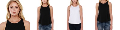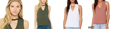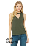 3.7 oz., 65% polyester, 35% viscose, 32 singles; Up your tank game with this flowy tank top; Relaxed fit with a cut out v-neck detail; Raw-edge sleeves; Made in super-soft poly-viscose material; Side-seamed; Tear away label;