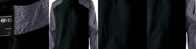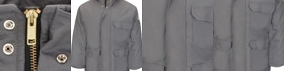 - Three large patch pockets with concealed snaps (lower pocket with handwarmers)