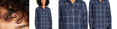 Casual and cool, this unique ombre plaid shirt has stretch and is perfect for a uniform look that is laid back, yet polished.