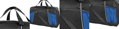 600D polyester; Front slash pocket and dual mesh water bottle pockets; Adjustable shoulder strap; Large main compartment with zippered closure; Adjustable shoulder strap and top grab handles; Kid friendly; 18"W x 11"H x 9"D;
