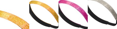 Sequin glitter bow with twill backing; 3" x 7.5" with 5.5" tail; 1" elastic hairband;