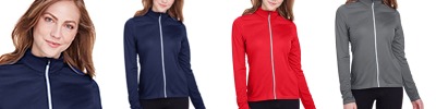 4-way stretch fabric; 5 oz., 80% polyester, 20% spandex; Moisture-wicking to keep athletes cool; Poly blend for max performance; Stain-release and odor-resistant for easy care; Heat-seal tag; All seams flat-lock stitched; Rash guard protection;