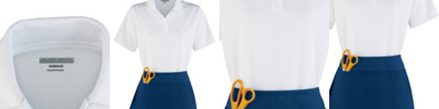 Heavyweight 90% polyester/10% spandex knit; Ladies' fit; Pad print label; Flat front waistband with covered elastic at back; Two darts at back of skirt for more custom fit; Left side seam V-notch at hem accented with three-color trim;
