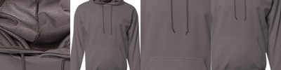 9.25 oz., 55% cotton 45% polyester heathered fleece; 1x1 yarndyed cuffs and waist; Lapover neckline with contrast lined hood; Set-on pouch pocket;
