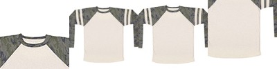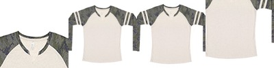 4.5 oz., 60% combed ringspun cotton/ 40% polyester fine jersey; 4.5 oz., 100% combed ringspun cotton jersey; Easytear™ label; contrasting topstitched self-fabric sleeve stripes; double-needle hemmed sleeves and rounded bottom; sideseam construction; fit: ladies' modern - semi-fitted ; taped neck; v-notch with raw serge finished edge;