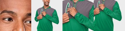 90% polyester, 10% spandex soft shell with a soft interior; Water and wind-resistant; Zippered chest and hand pockets; Auto-lock zipper with easy-grab zipper pull; Media port; Adjustable cuffs; Interior Cell Phone Pocket w/ Hook & Loop Closure 8"L x 6"W;