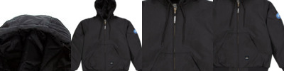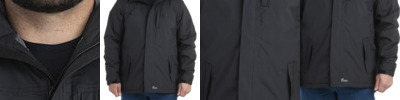 - Center front coil zipper closure with shock cord at hood, and self fabric chin guard