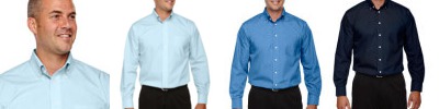 4.1 oz., 60% cotton, 40% polyester; fine yarn count shirting; true Non-iron performance straight from the dryer; Classic Fit for professional appearance; pearlized buttons; patented pucker-free taped seams; specially fused collar, cuffs and placket; split back seam with bias cut back yoke; rolled button-down collar; adjustable "Comfort Collar" for up to an inch of stretch at neck; left-chest pocket;