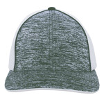* Polyester blend * Spandex trucker mesh * Sublimated heather front panels * Breathable * Wicks moisture * Mid-profile * Pro-model * White transitional undervisor * Pro-stitched finish * Closed back