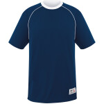 Two layers of 100% polyester wicking knit * Wicks Moisture * Outside locker label * V-neck collar * Contrast color inserts * Fully reversible * Each layer hemmed separately for easy embellishment * Designed to be NFHS compliant