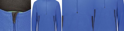 * 78% polyester/22% spandex heavyweight knit with 4-Way stretch properties allow for increased mobility * 90% polyester/10% spandex heather fabric inserts * Wicks Moisture * Partial storm flap and zipper garage to keep elements out * Set-in sleeves * Front zippered pockets * Dual inside pockets * Thumbholes * Dropped tail