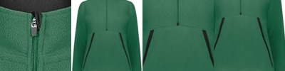 * 78% polyester/22% spandex heavyweight knit with 4-Way stretch properties allow for increased mobility * 90% polyester/10% spandex heather fabric inserts * Wicks Moisture * Ladies' fit * Partial storm flap and zipper garage to keep elements out * Set-in sleeves * Front zippered pockets * Dual inside pockets * Thumbholes * Dropped tail