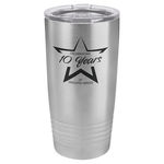 Polar Camel 20 Oz. travel mugs feature double-wall stainless steel, vacuum insulation with a clear lid featuring the Polar Camel logo. It has a narrower bottom to fit most standard cup holders. They are 2X heat and cold resistant compared to normal travel mugs and serve as a great way to get your company's name out there, as well as a reminder to your customers where to come back for great drinks. Laser Engraved. Minimum order 24. 3 3/8" Diameter x 6 7/8" H x 3/16" Thick