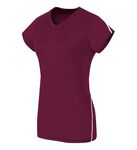 Lightweight 90% polyester/10% spandex knit * 92% polyester/8% spandex wicking pinhole mesh inserts * Wicks Moisture * Ladies' fit * V-neck collar * Contrast color stitching * Raglan sleeves * Designed to conform to NFHS specifications for a sold jersey